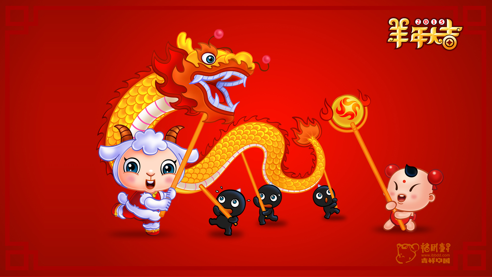 招财童子-羊年吉祥桌面(1920x1080) 壁纸