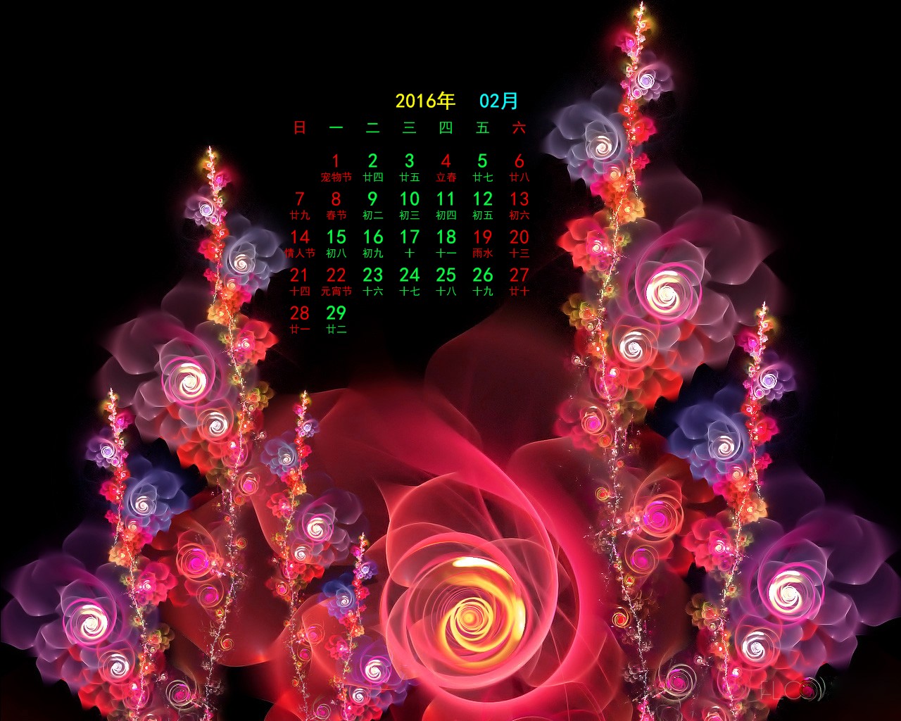 2016年2月电脑绘画月历(1280x1024) 壁纸