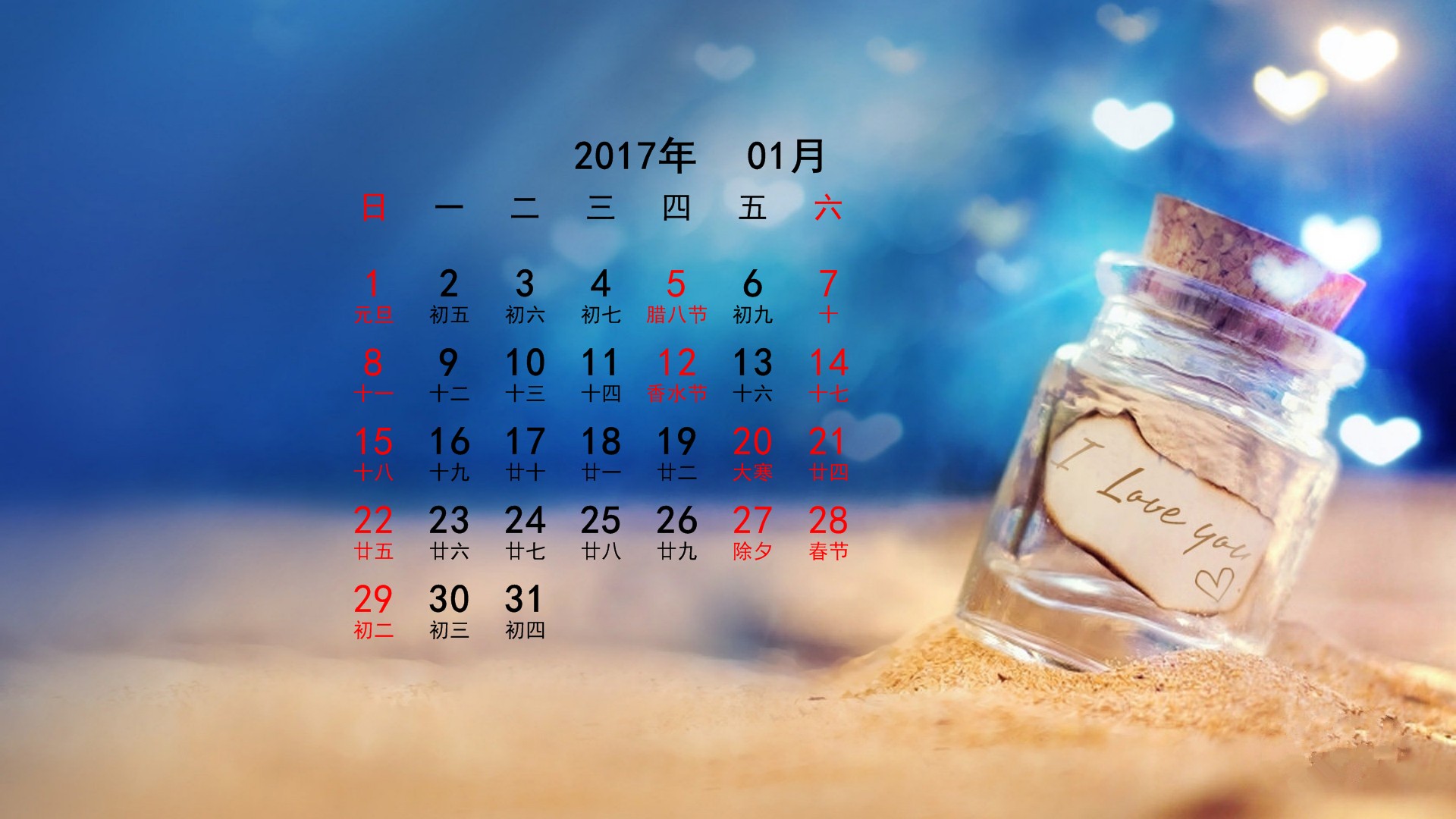 2017年元月非主流月历(1920x1080) 壁纸