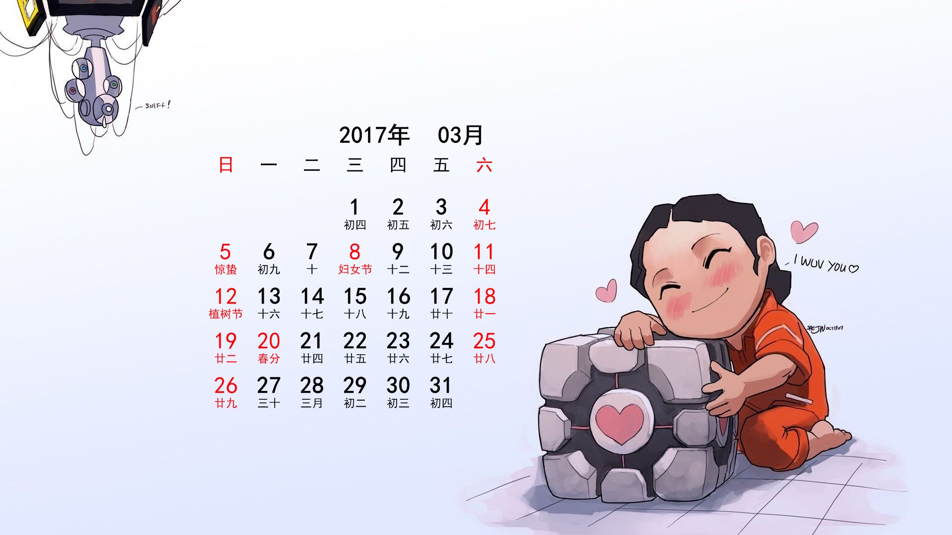 2017年3月静物卡通月历(1920x1080) 壁纸