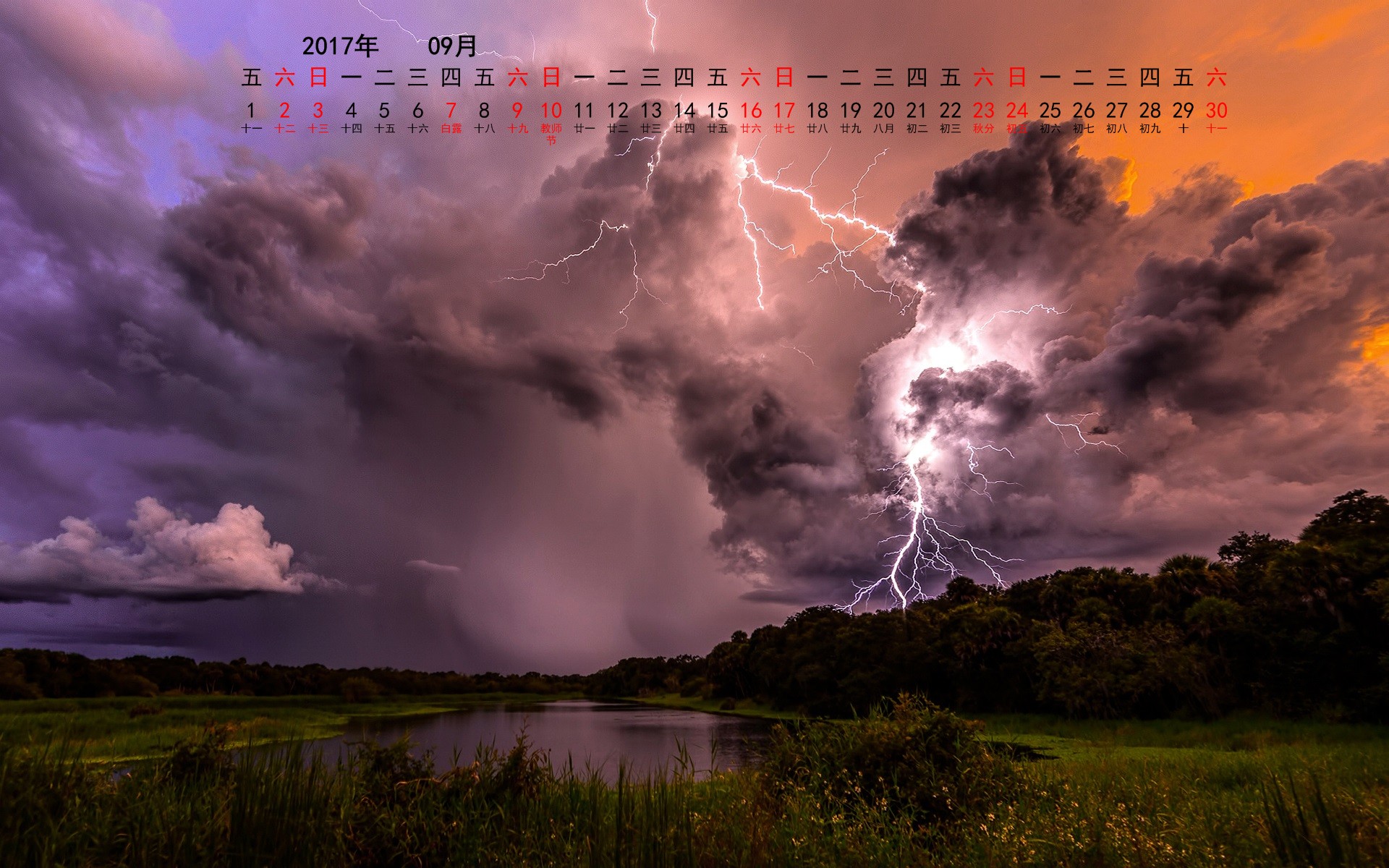 2017年9月风景宽月历(1920x1200) 壁纸