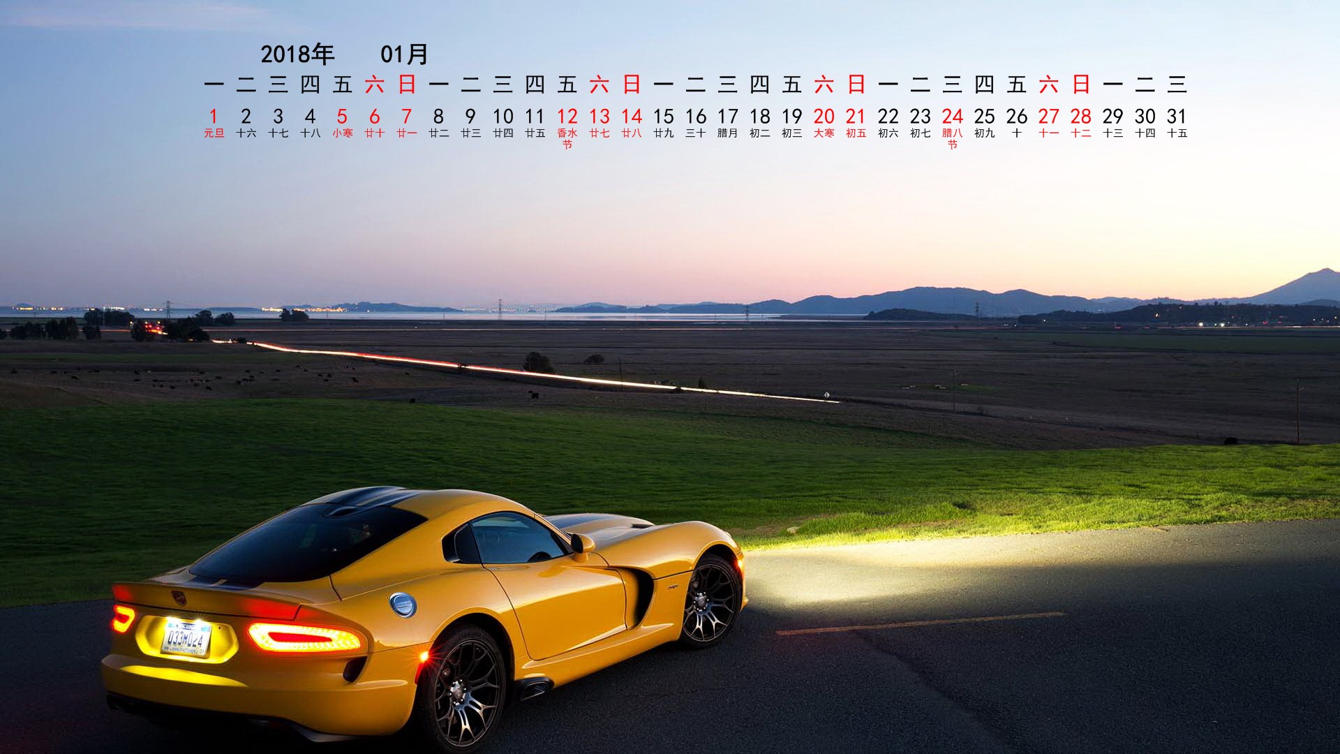 2018年元月风景宽月历(1920x1080) 壁纸