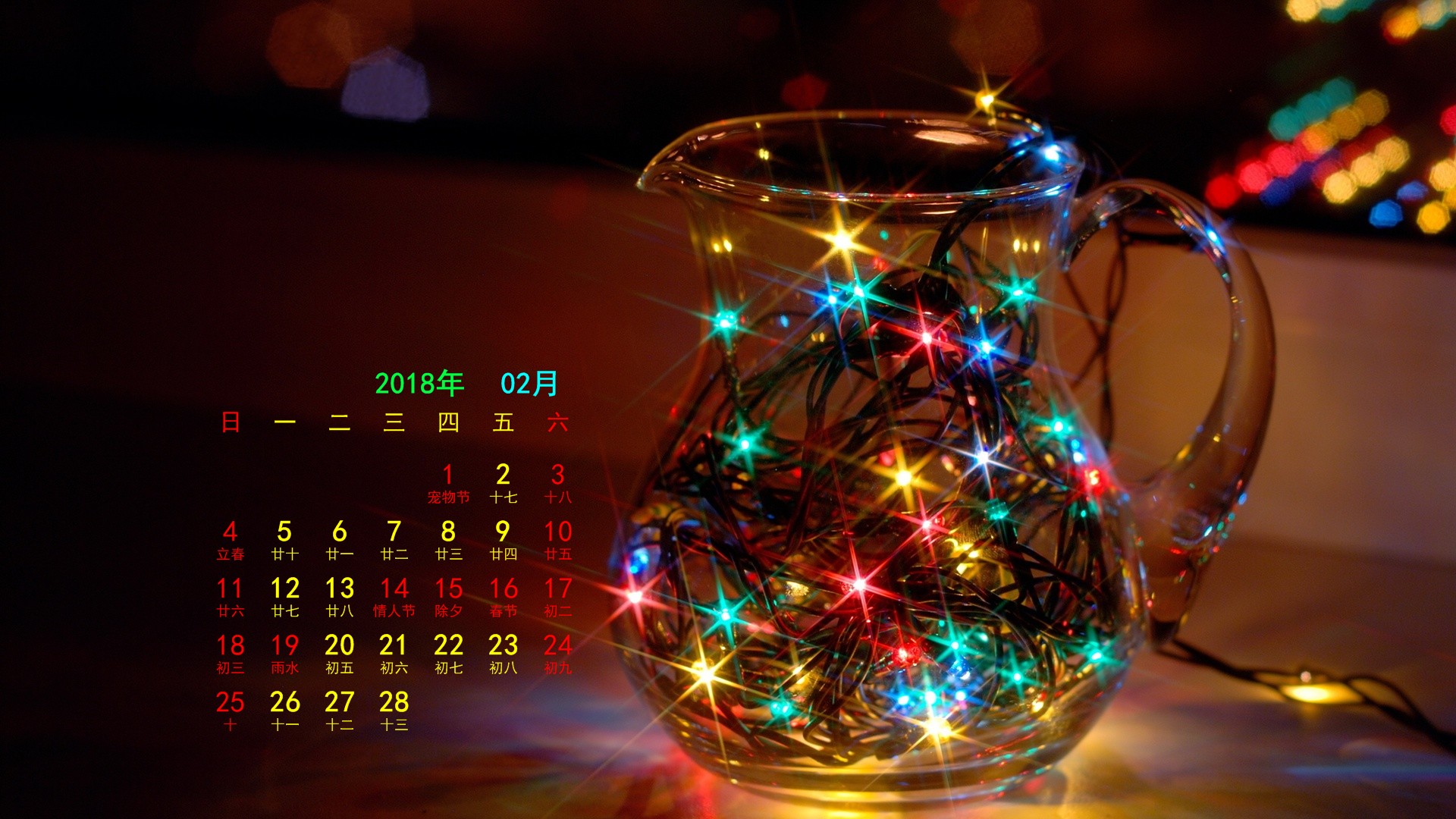 2018年2月非主流月历(1920x1080) 壁纸