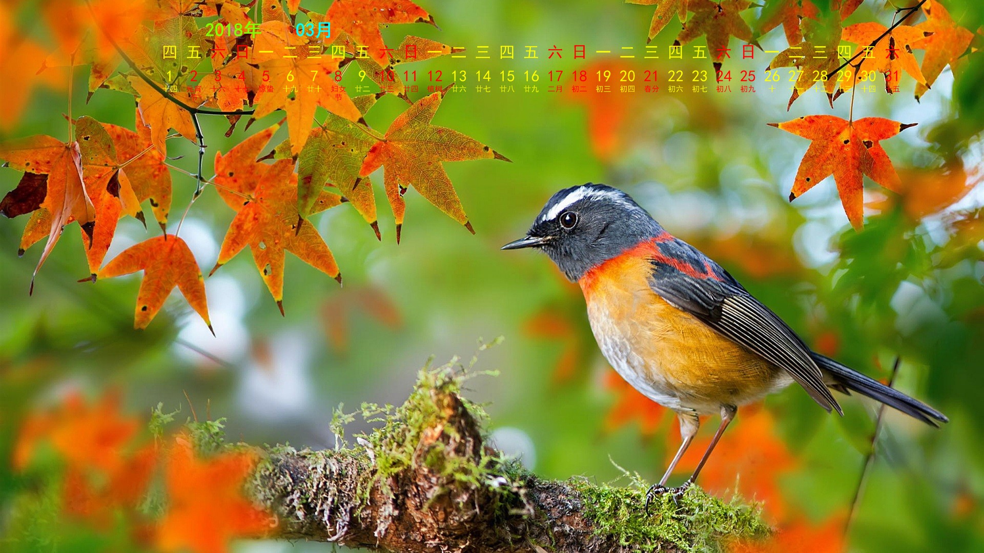 2018年3月小鸟宽月历(1920x1080) 壁纸