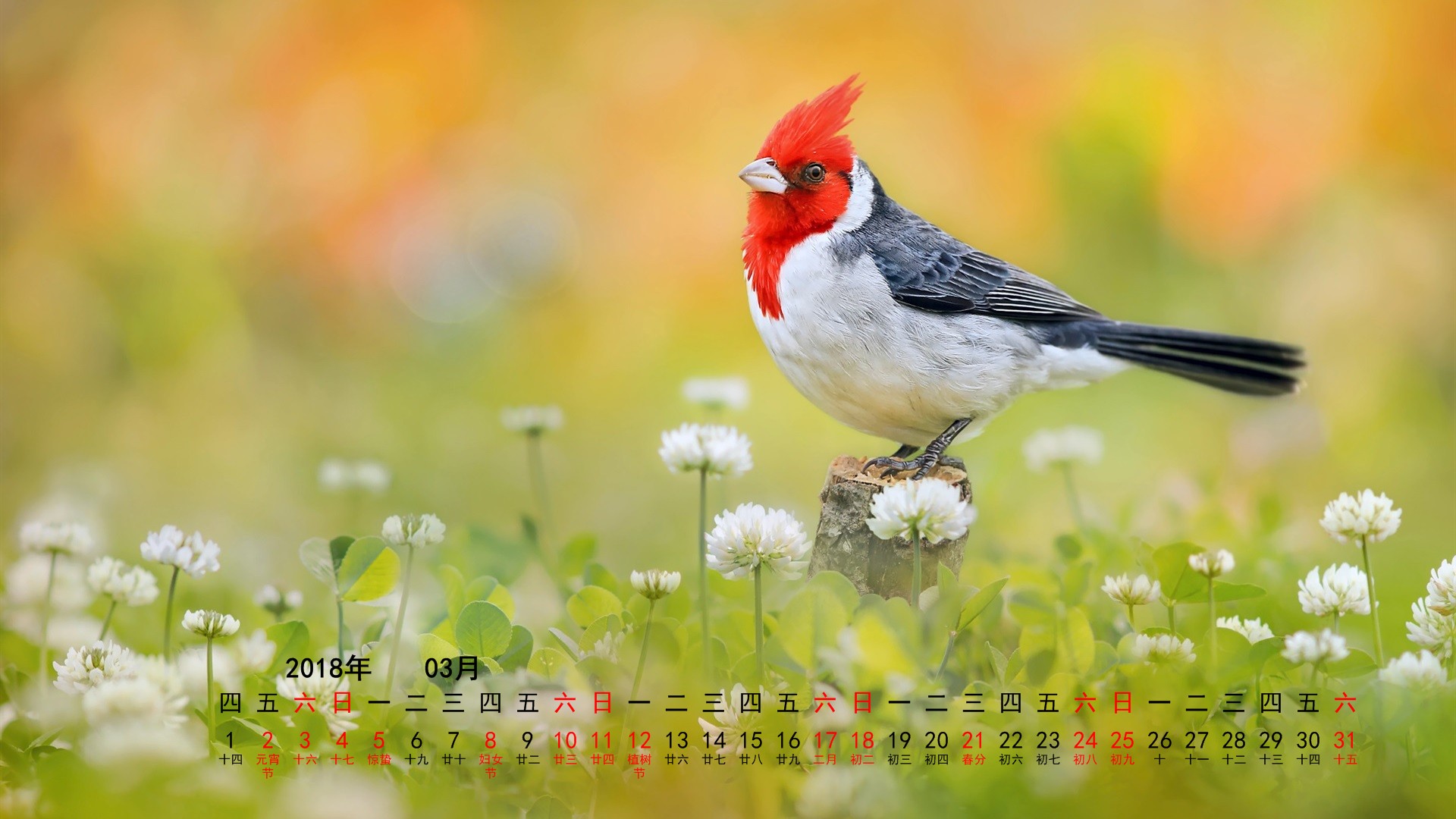 2018年3月小鸟宽月历(1920x1080) 壁纸