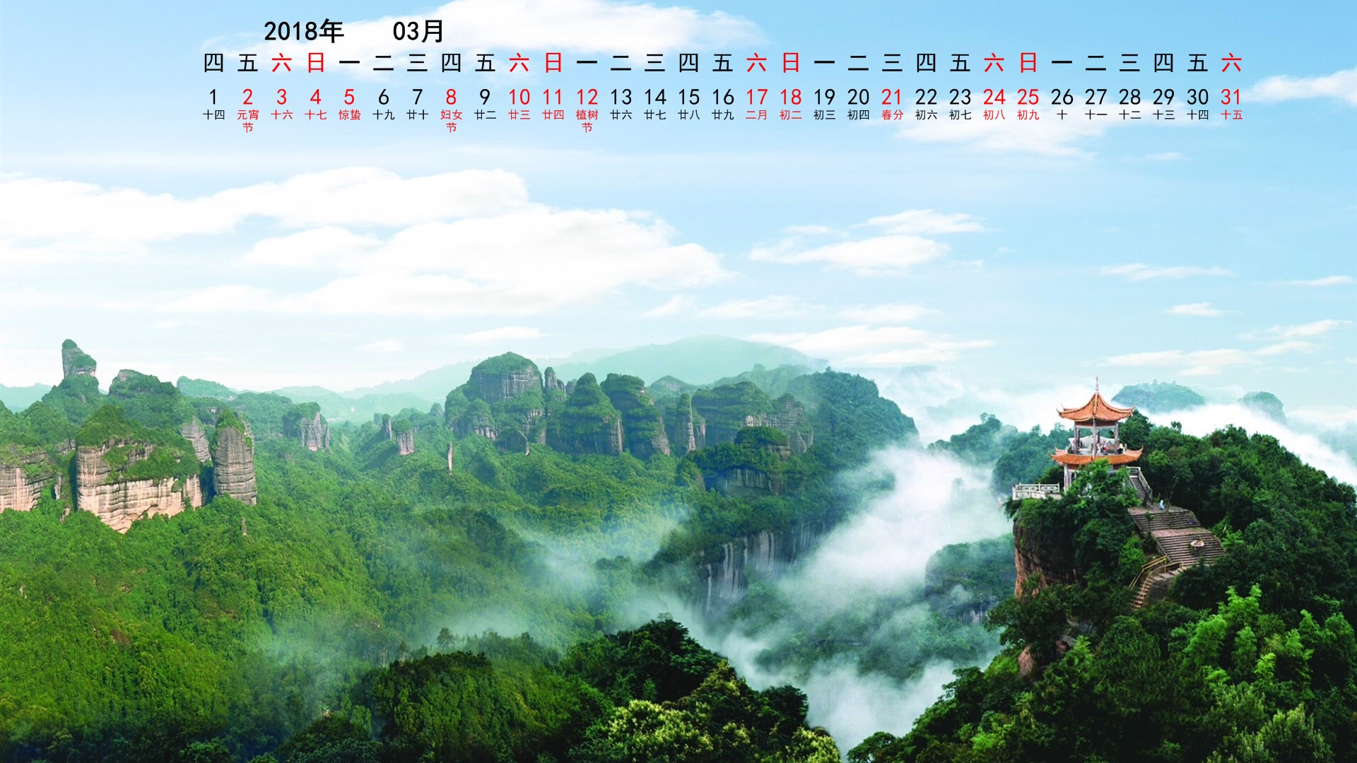 2018年3月风景宽月历(1920x1080) 壁纸