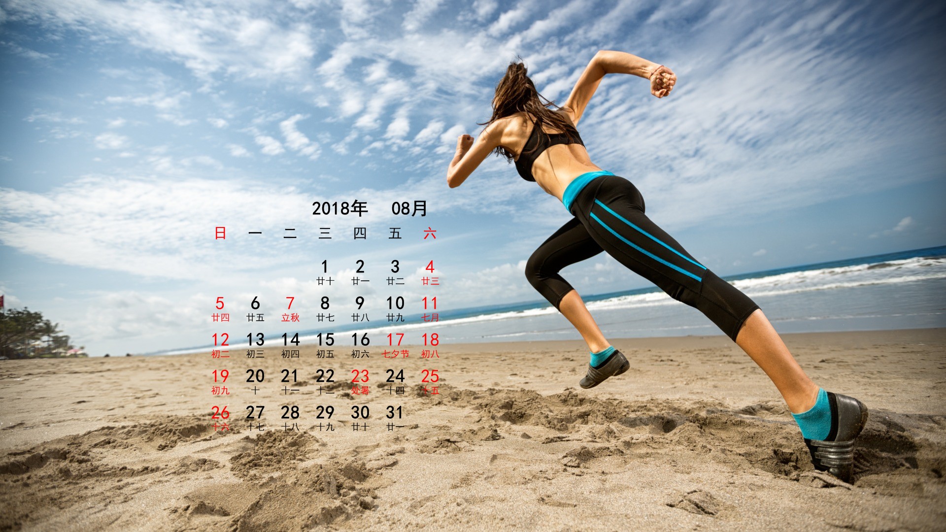 2018年8月运动女孩月历(1920x1080) 壁纸