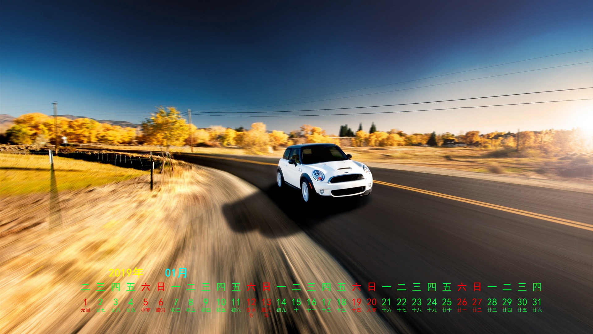 2019年元月跑车宽月历(1920x1080) 壁纸
