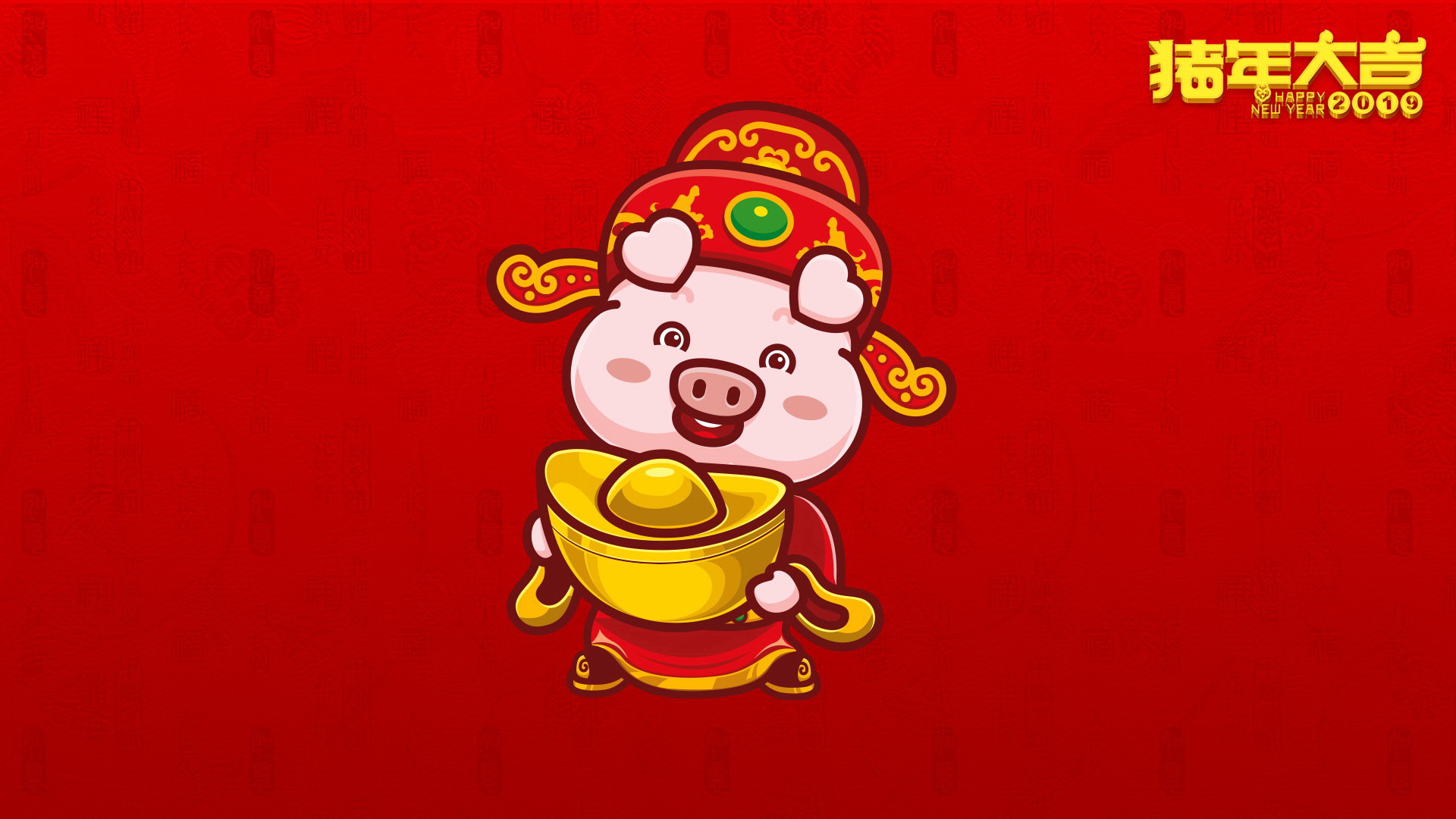 招财童子-金猪贺岁(1920x1080) 壁纸