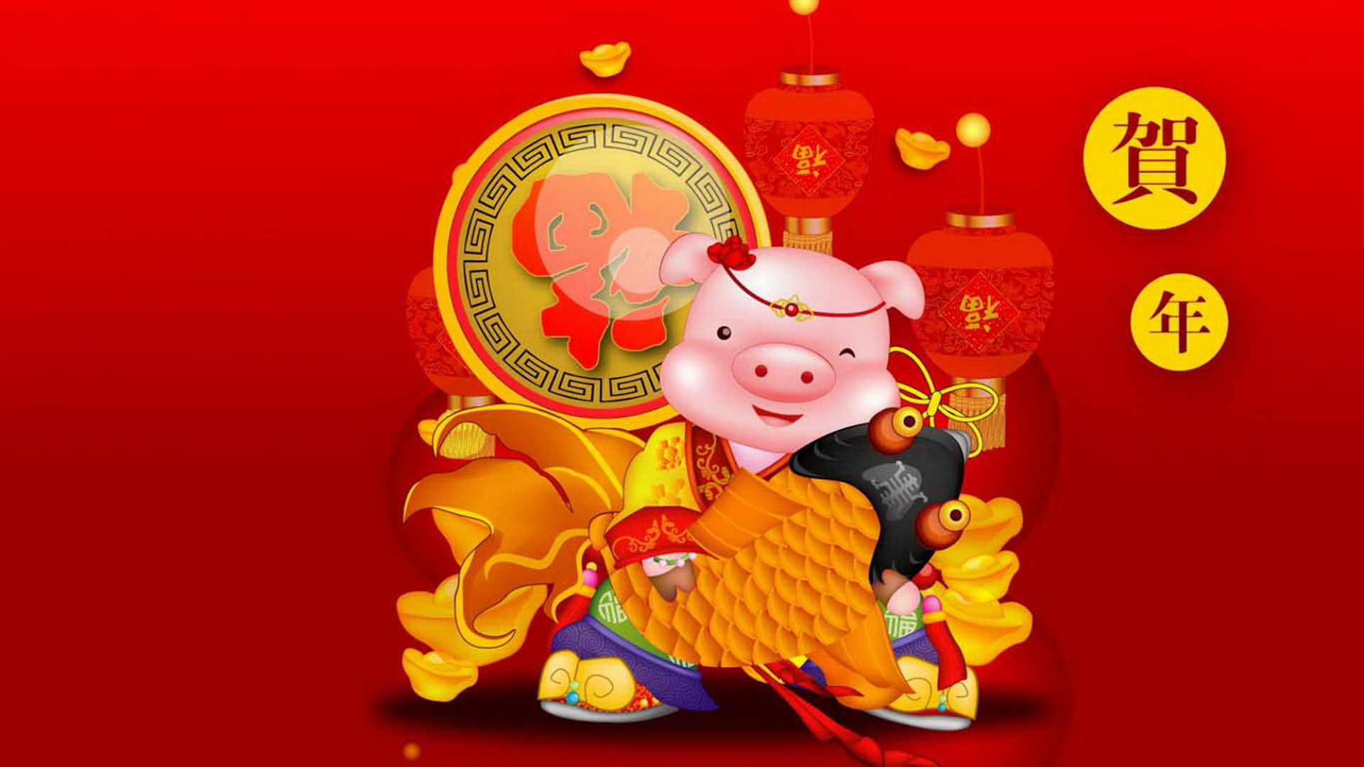 2019猪年新春贺岁桌面(1920x1080) 壁纸