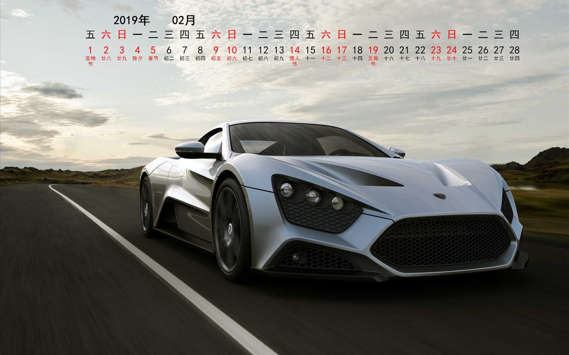 2019年2月跑车宽月历(1920x1080) 壁纸