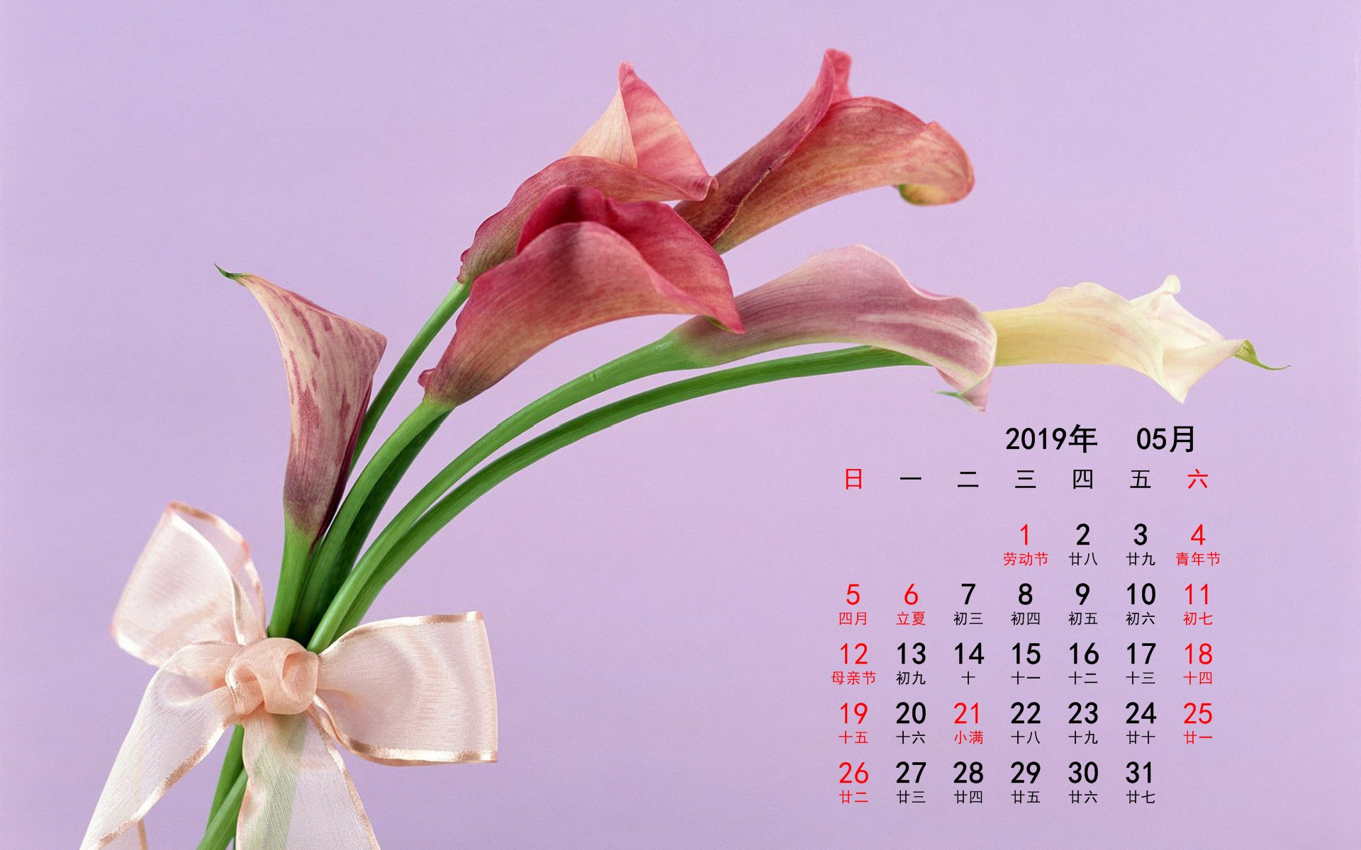 2019年5月花卉宽月历(1920x1200) 壁纸