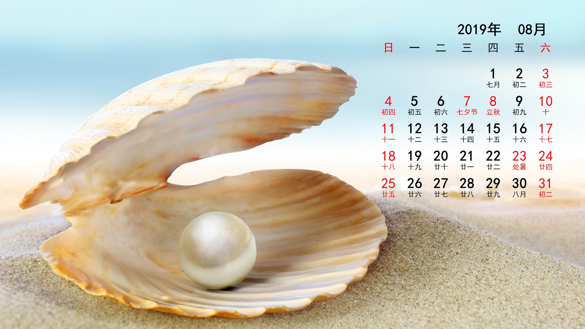 2019年8月风景宽月历(1920x1080) 壁纸