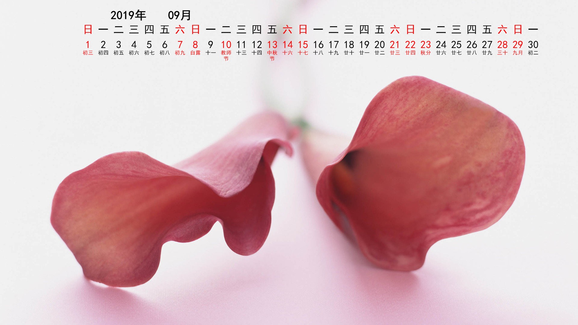 2019年9月花卉宽月历(1920x1080) 壁纸