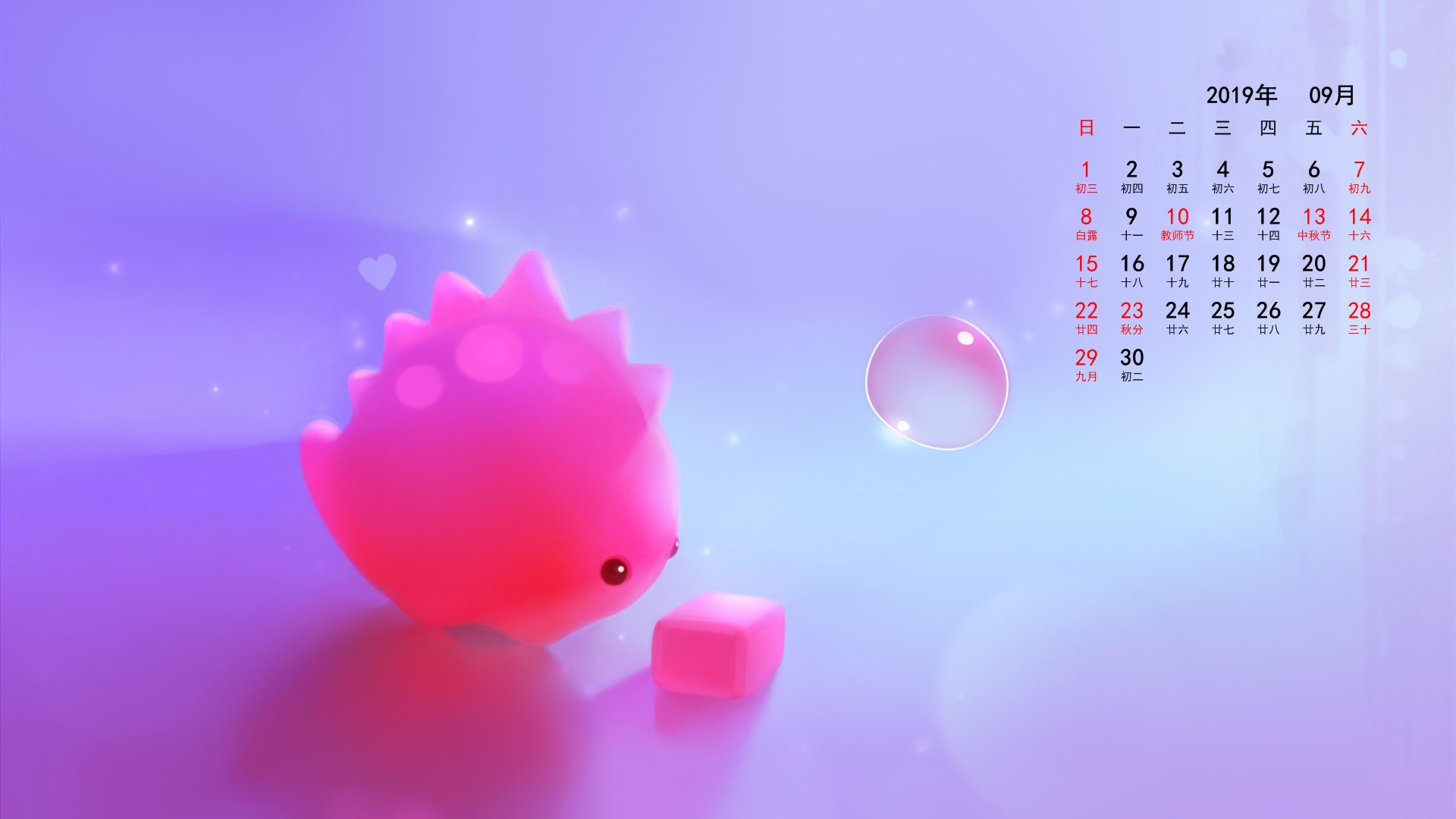 2019年9月非主流月历(1920x1080) 壁纸
