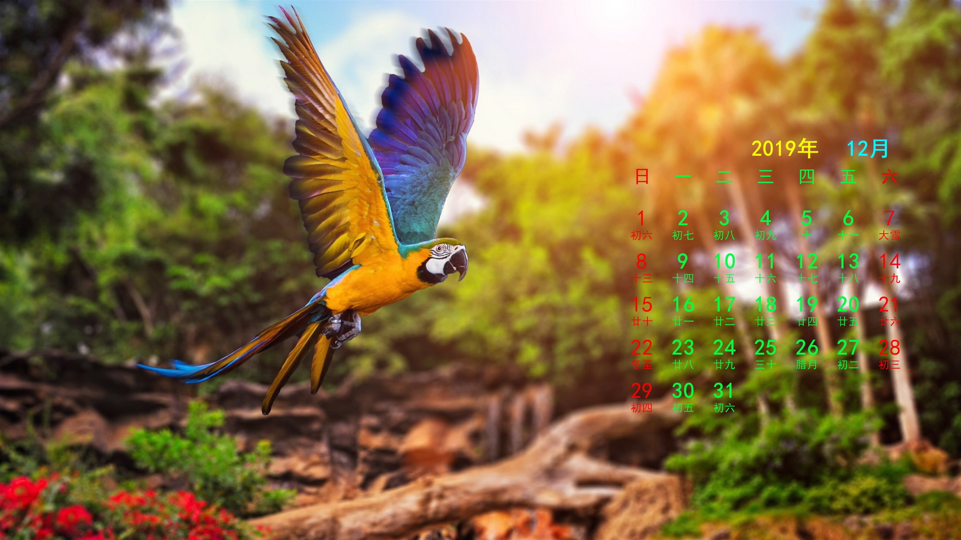 2019年12月动物宽月历(1920x1080) 壁纸