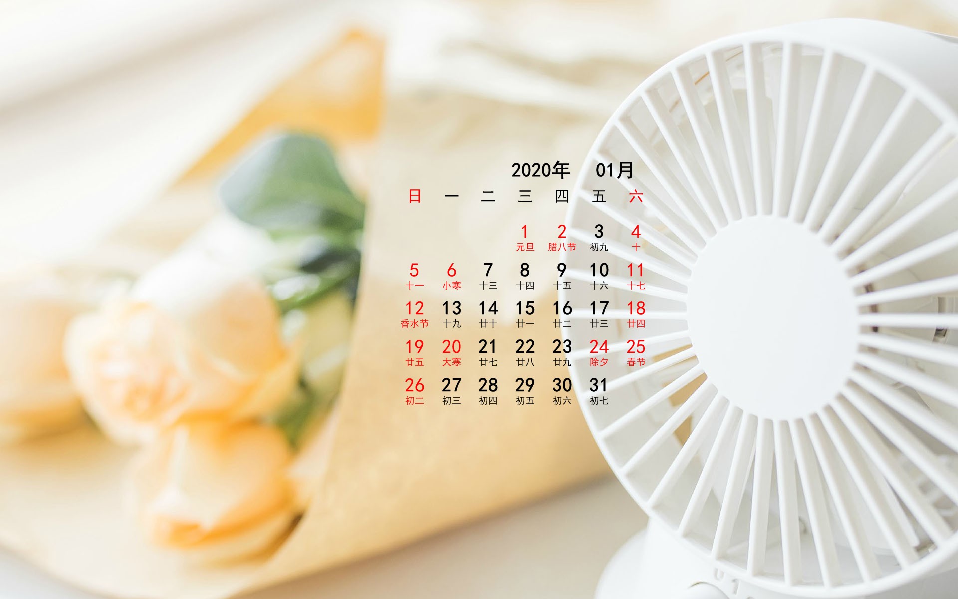 2020年元月静物宽月历(1920x1200) 壁纸