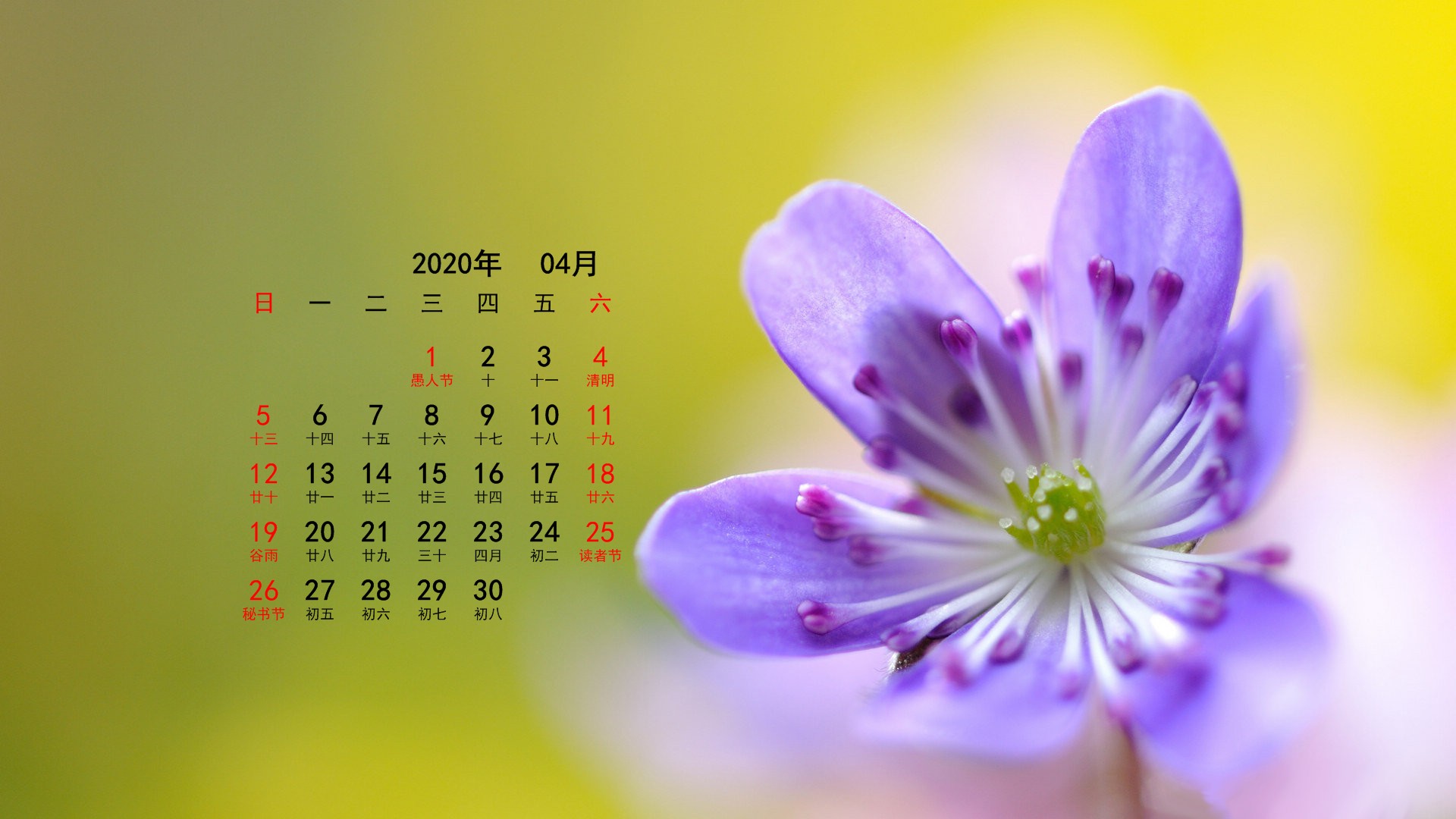 2020年4月花卉宽月历(1920x1080) 壁纸