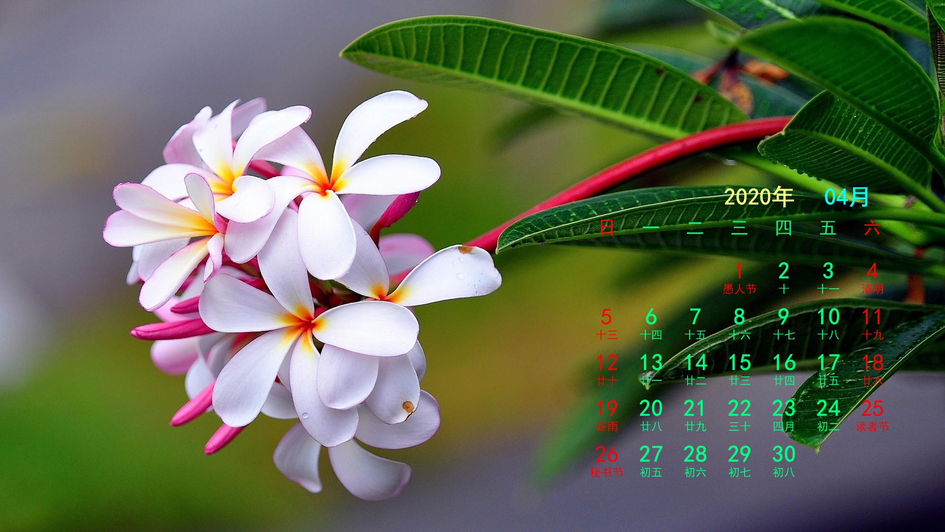 2020年4月花卉宽月历(1920x1080) 壁纸