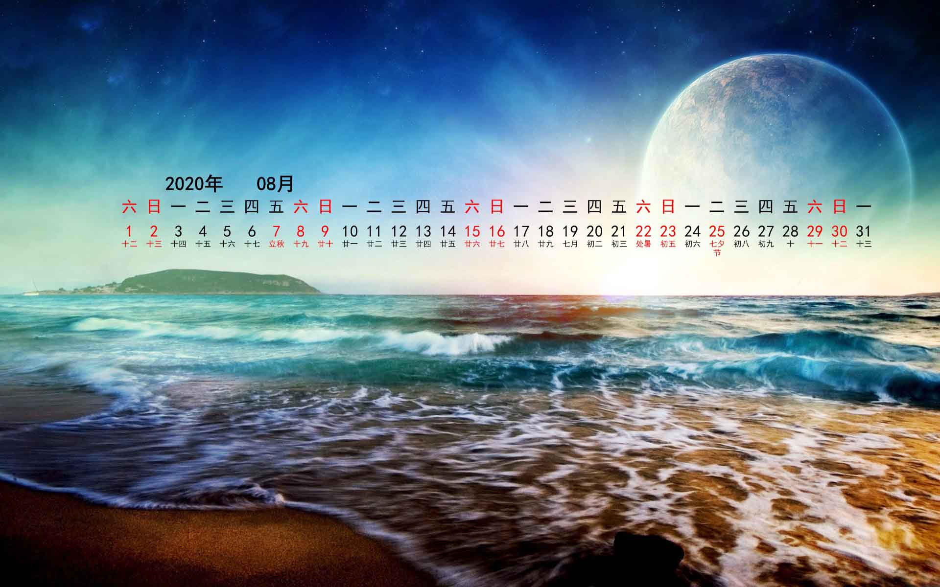 2020年8月风景艺术月历桌面(1920x1200) 壁纸