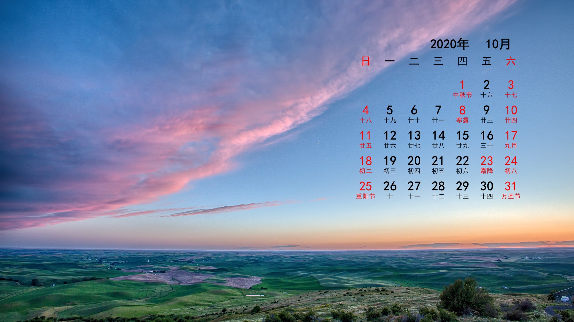 2020年10月风景宽月历(1920x1080) 壁纸