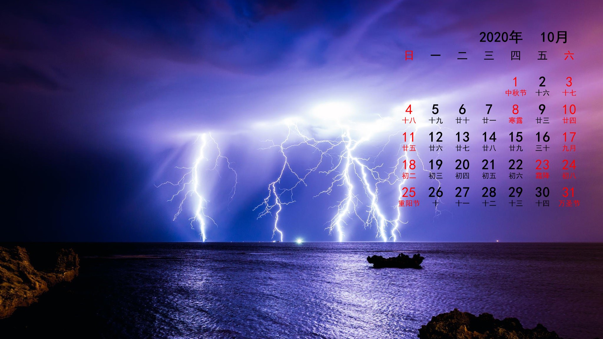 2020年10月风景宽月历(1920x1080) 壁纸