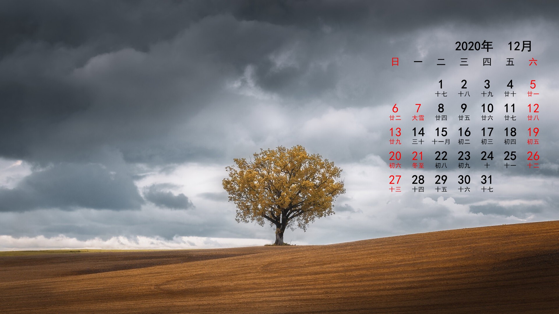 2020年12月风景宽月历(1920x1080) 壁纸