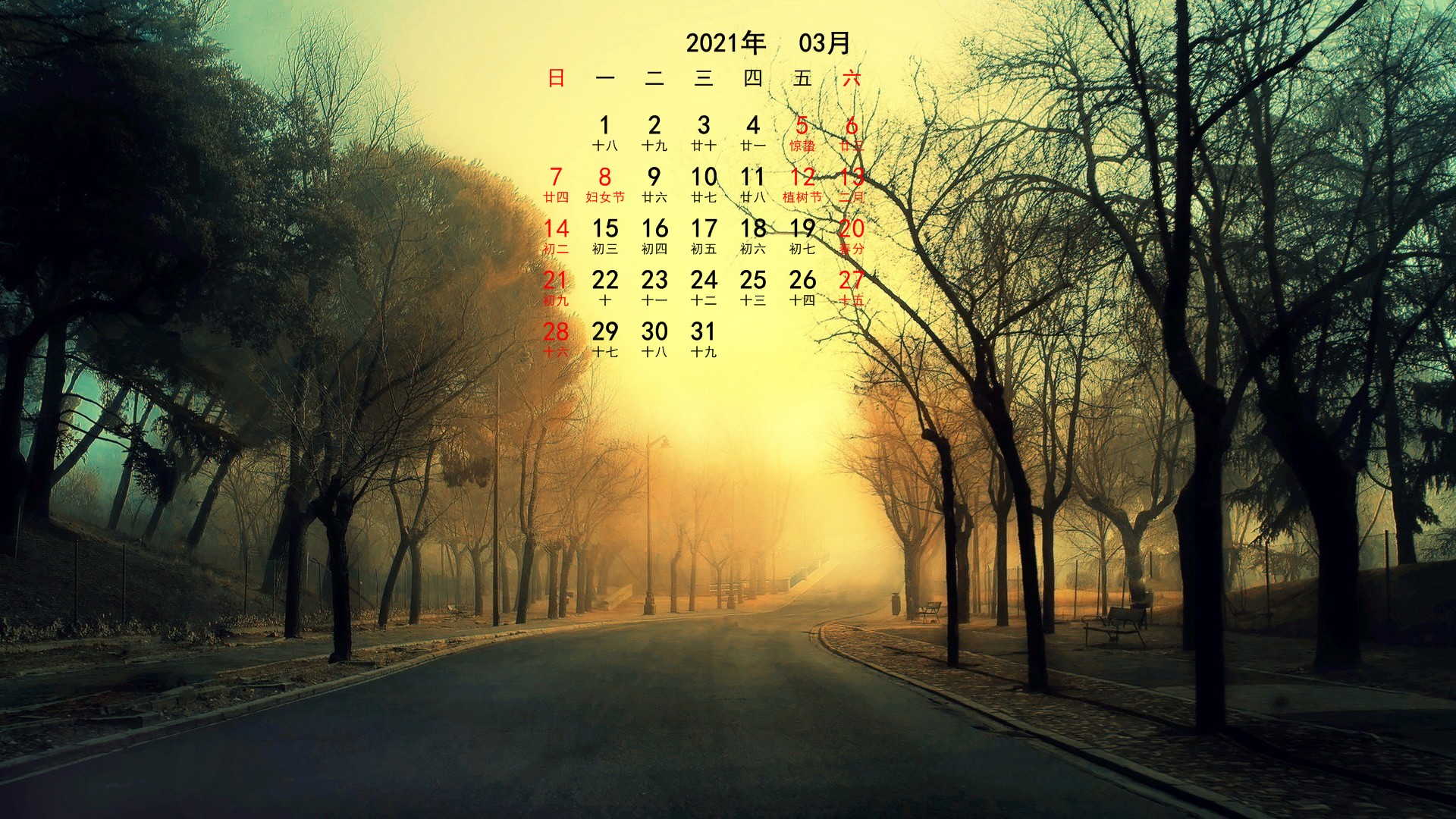 2021年3月风景宽月历(1920x1080) 壁纸