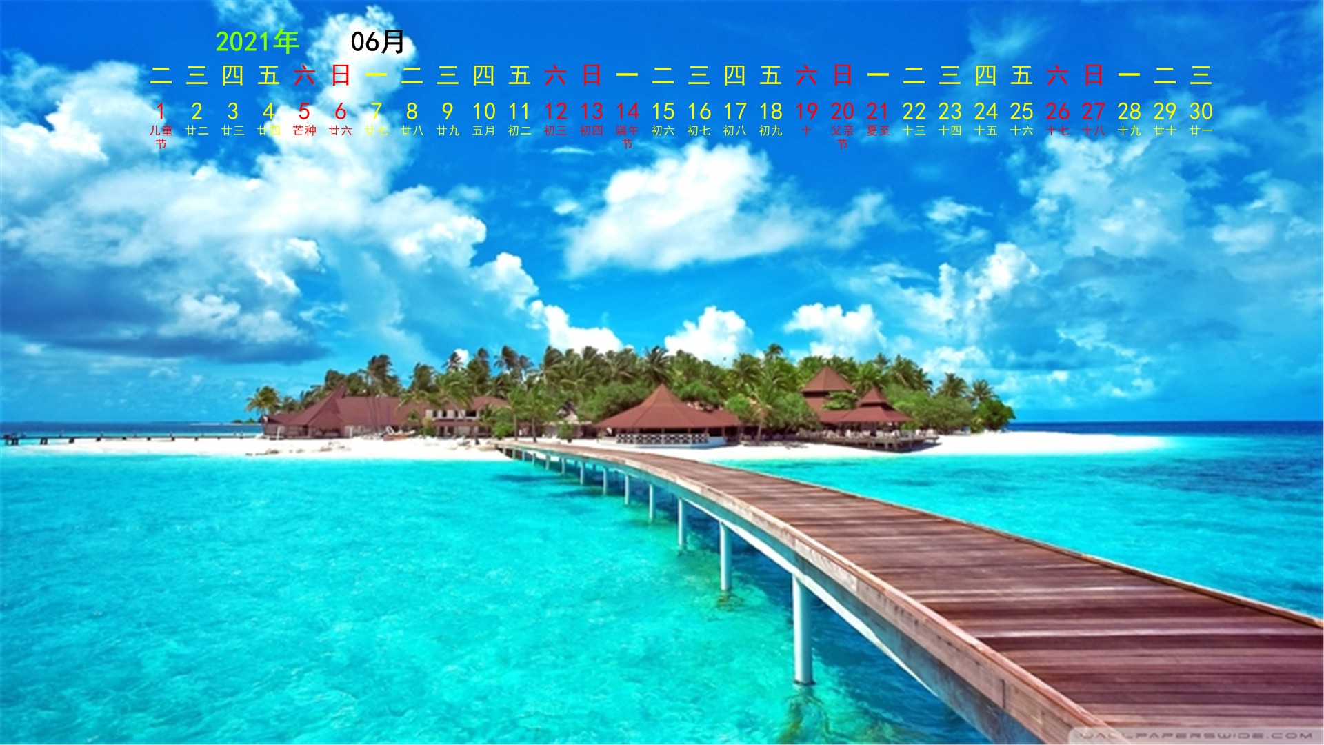 2021年6月风景综合月历(1920x1080) 壁纸