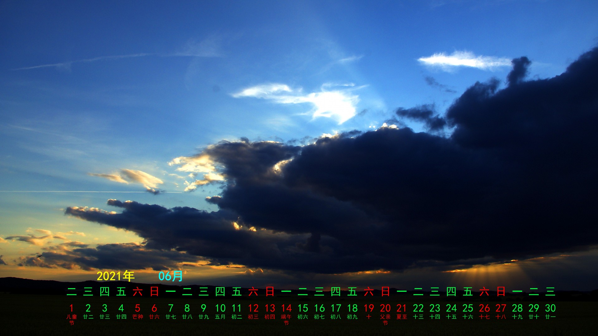 2021年6月风景综合月历(1920x1080) 壁纸