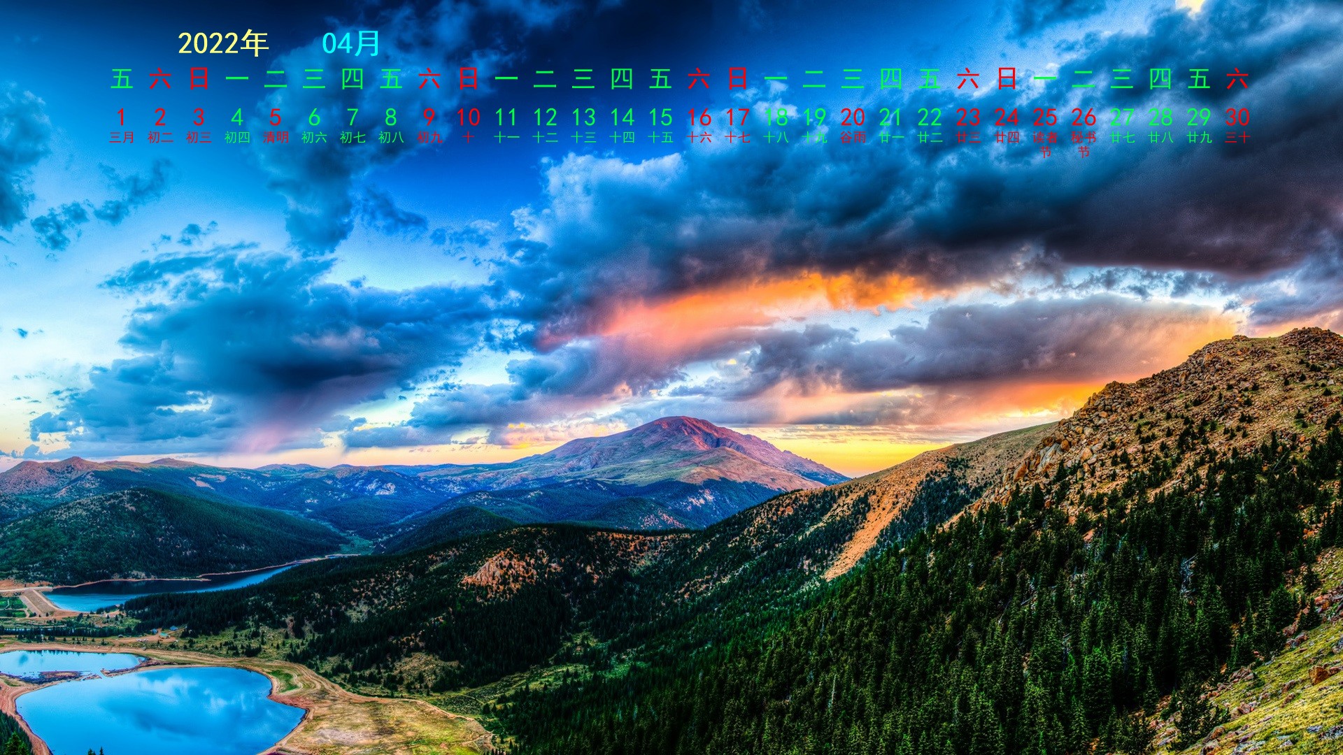 2022年4月综合宽月历(1920x1080) 壁纸