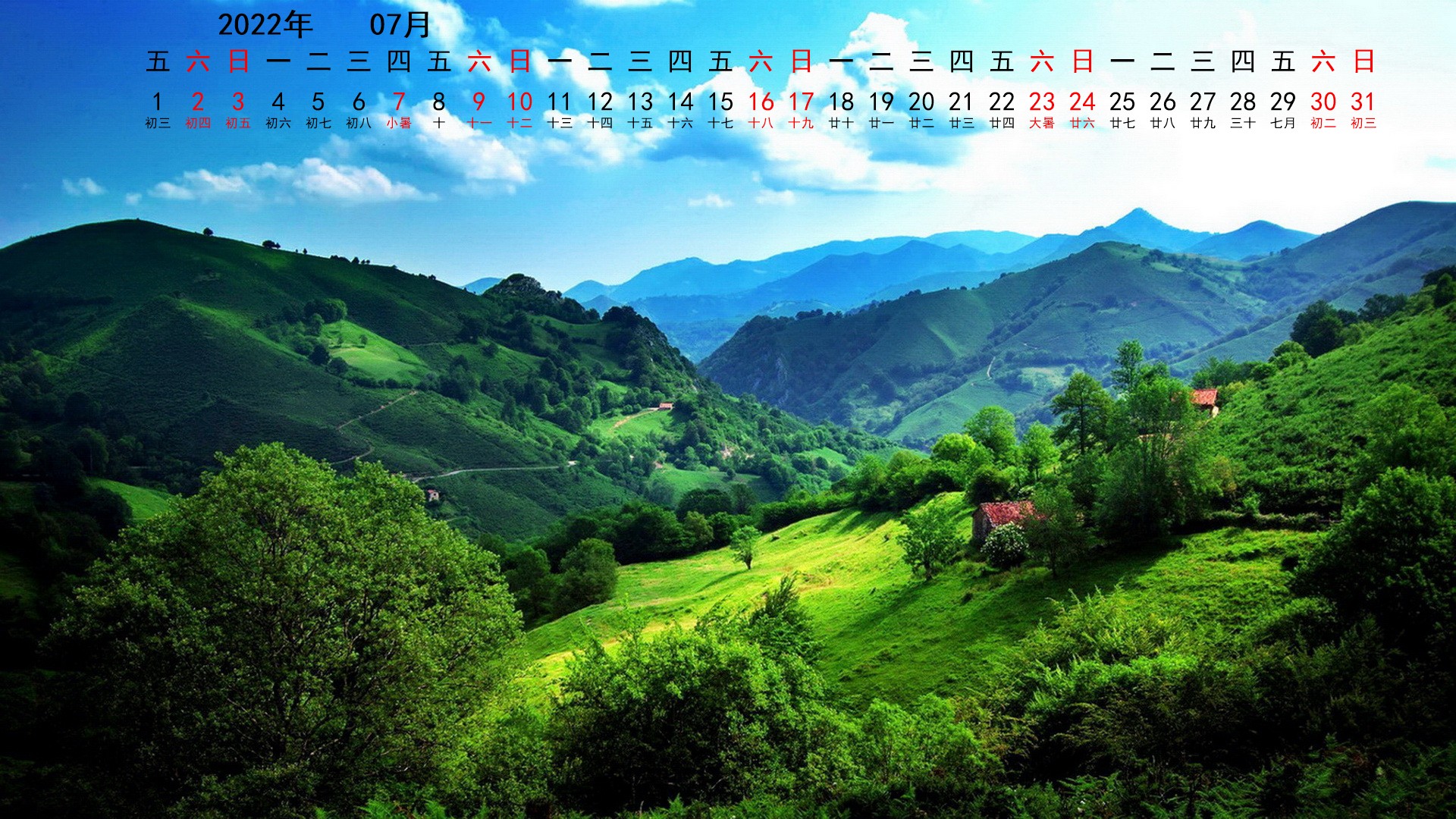 2022年7月风景宽月历(1920x1080) 壁纸