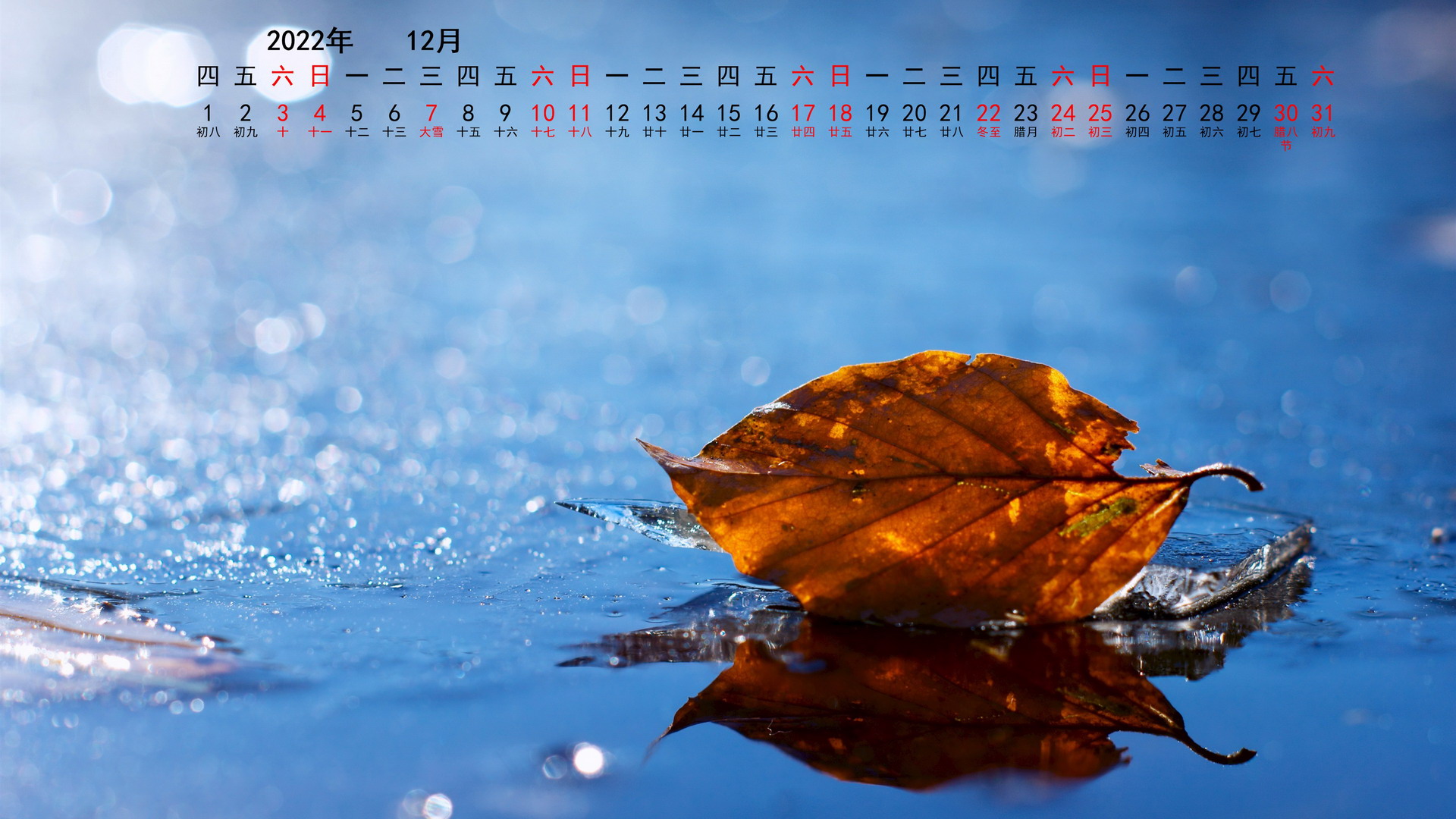 2022年12月综合宽月历(1920x1080) 壁纸
