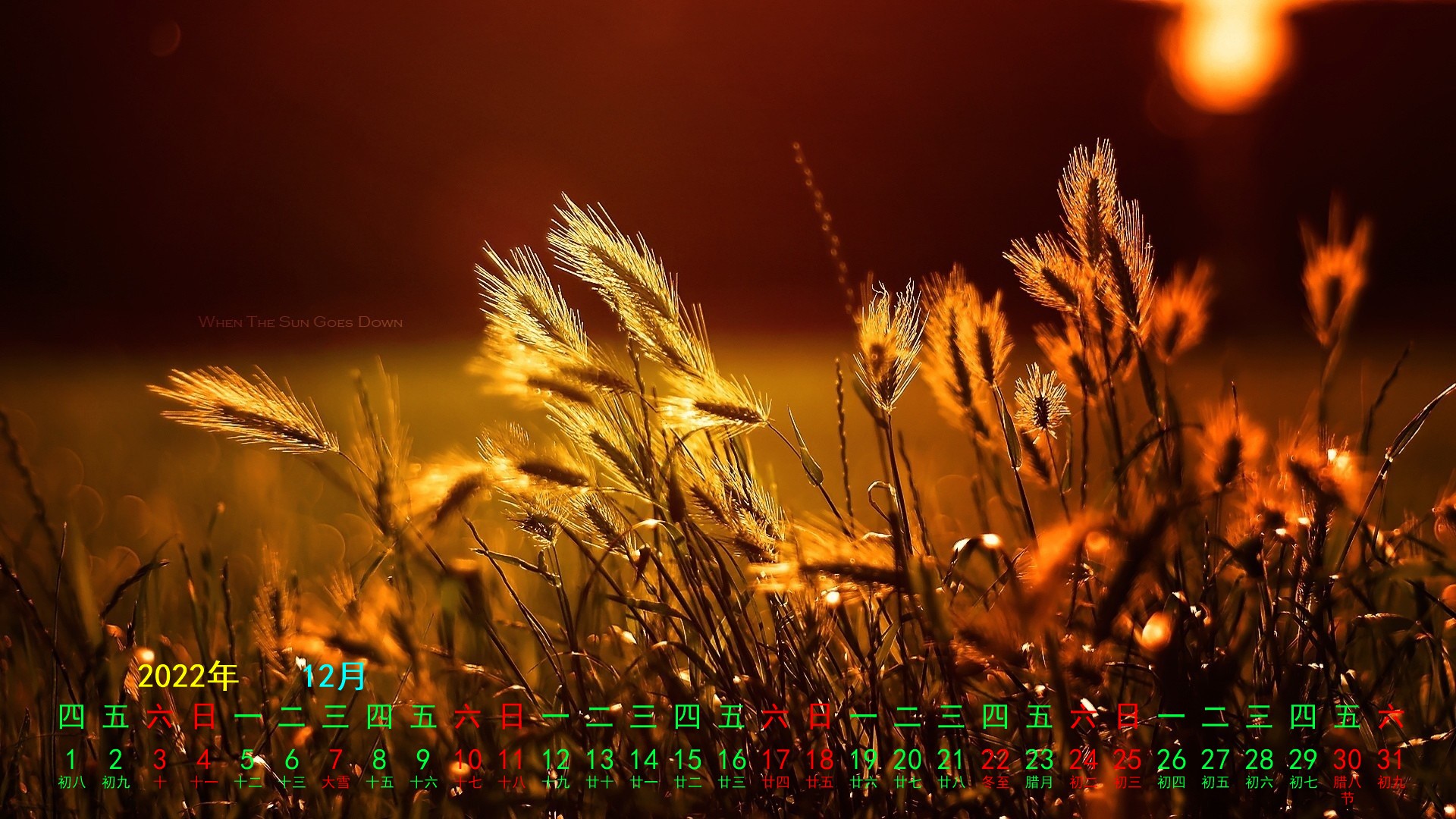 2022年12月综合宽月历(1920x1080) 壁纸