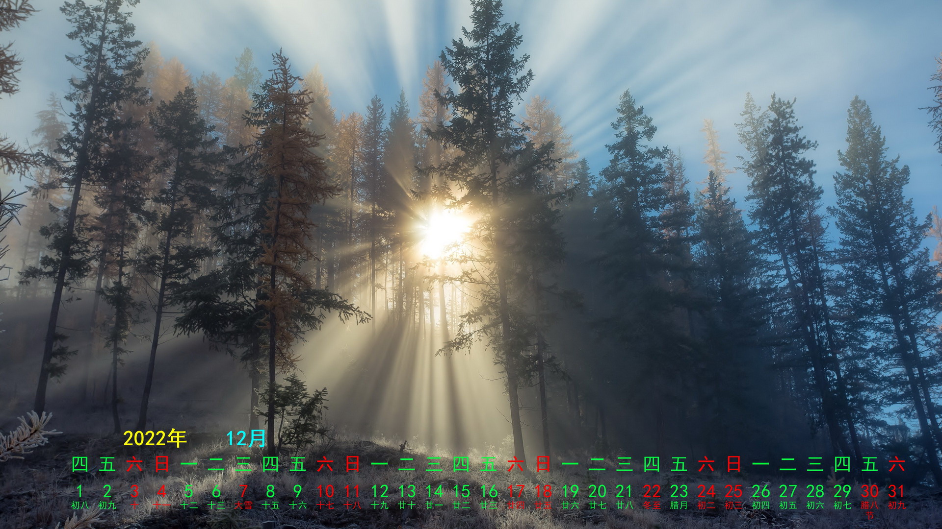 2022年12月风景宽月历(1920x1080) 壁纸