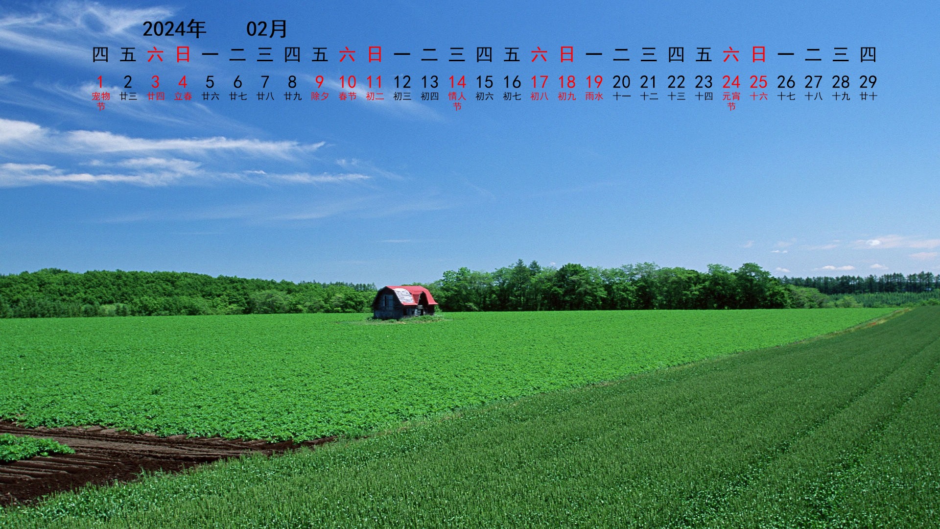 2024年2月综合宽月历(1920x1080) 壁纸