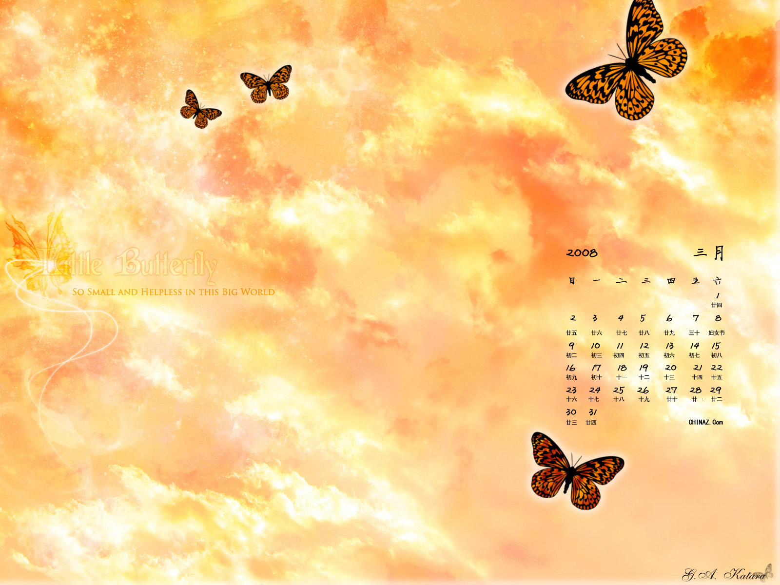 3月份卡通桌面月历(1600x1200) 壁纸