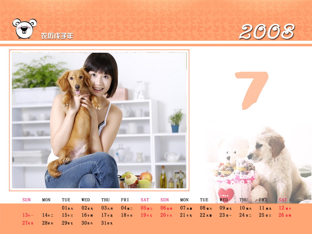 2007年7月月历桌面 壁纸