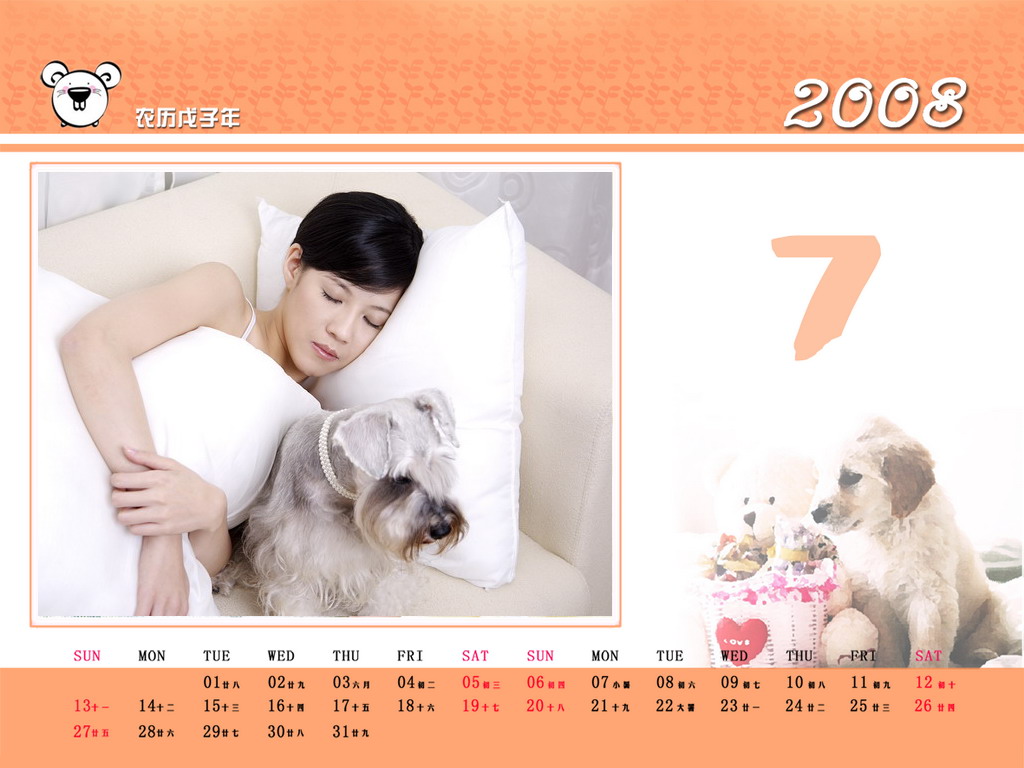 2007年7月月历桌面 壁纸