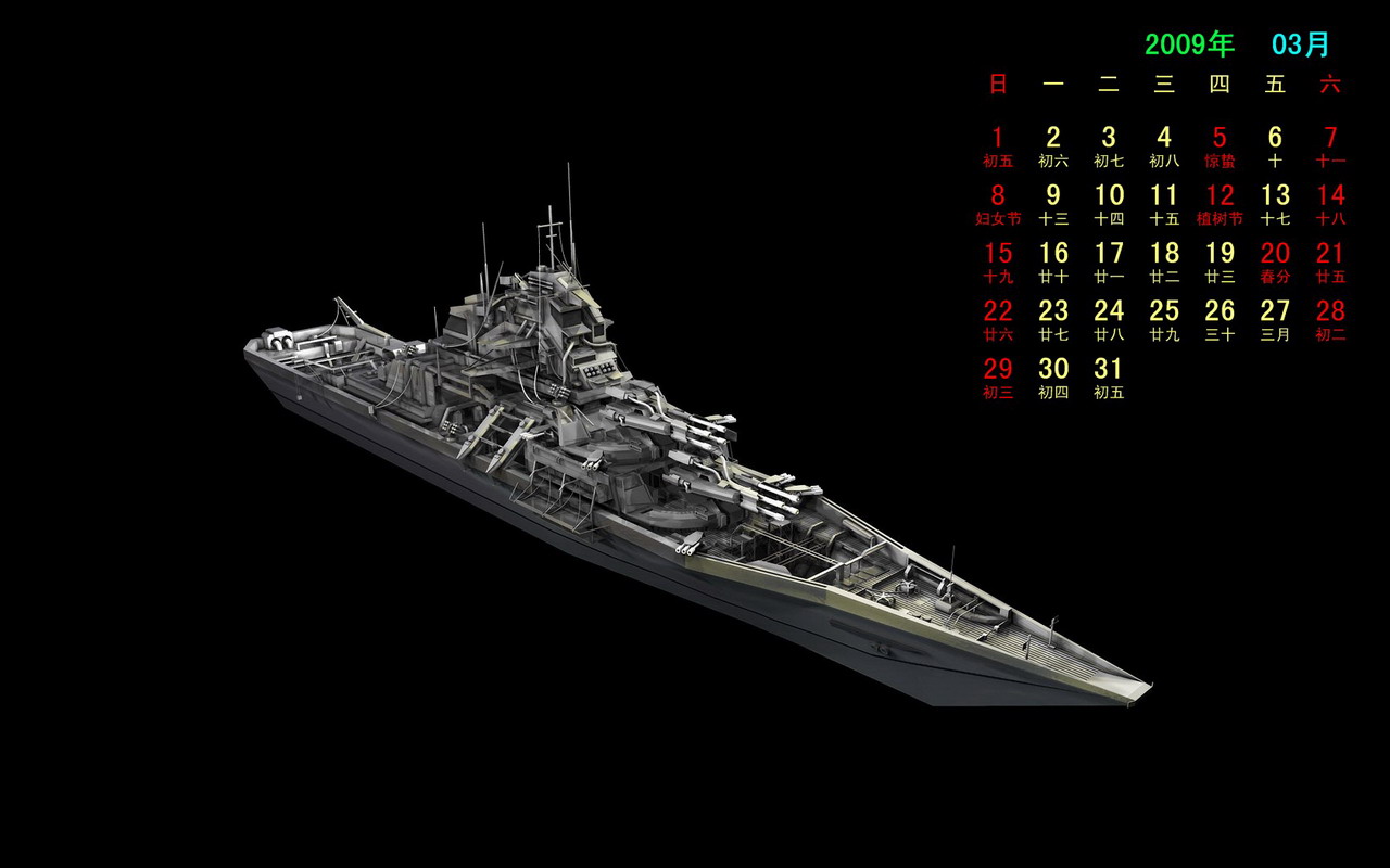 09年3月艺术黑屏月历(1280x800) 壁纸