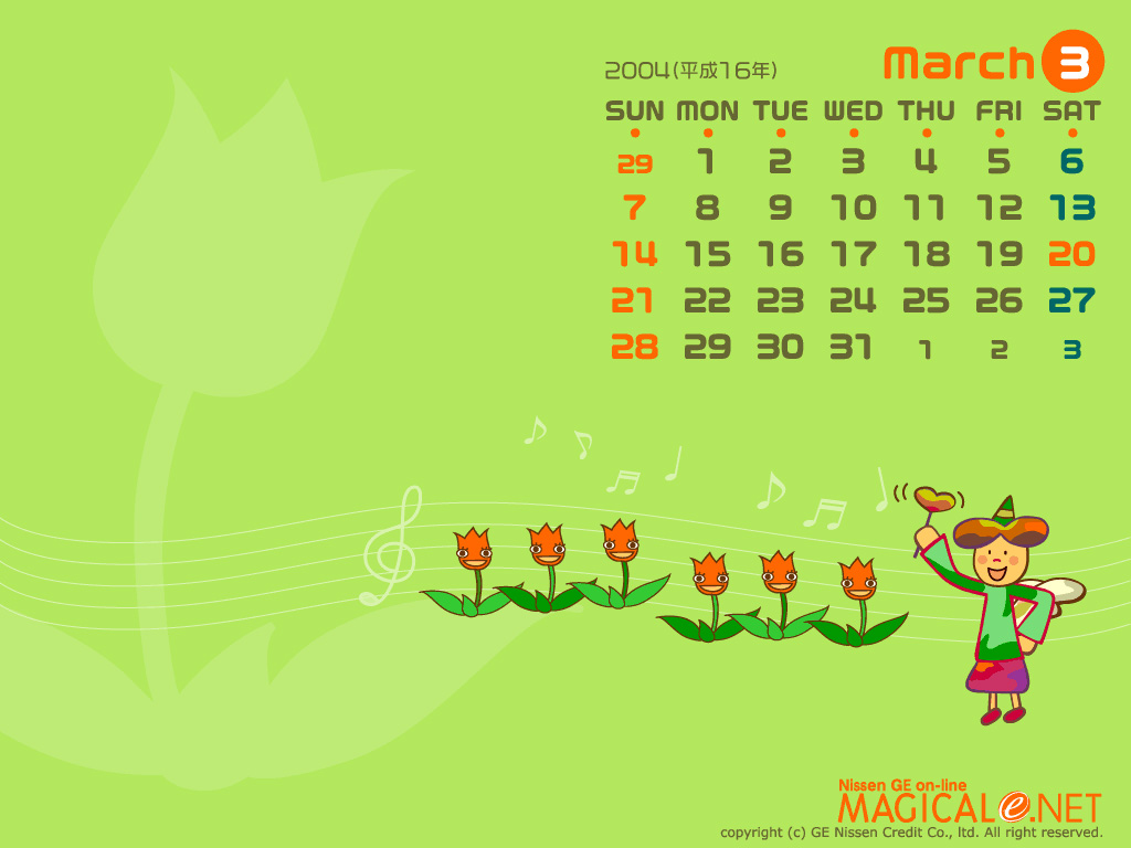 2004年三月月历 壁纸