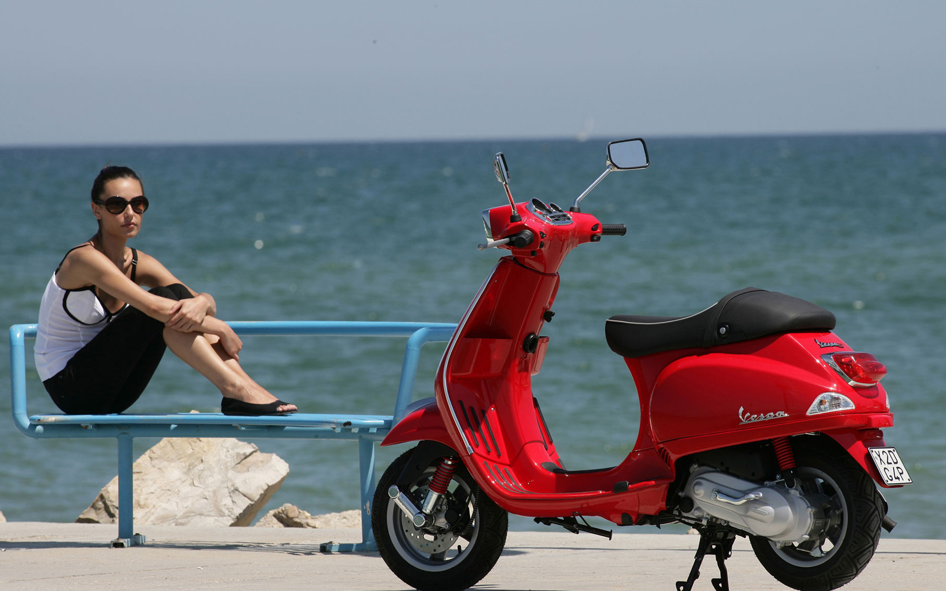 比亚乔摩托车-美女车模(1920x1200) 壁纸
